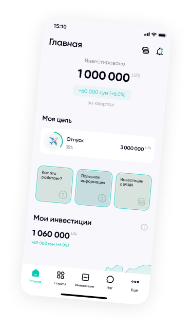 IMAN Invest ilovasining asosiy sahifasini oching va foydangiz ko‘ringan qismini